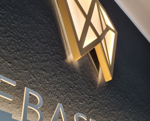 Prospektwand mit Logo
